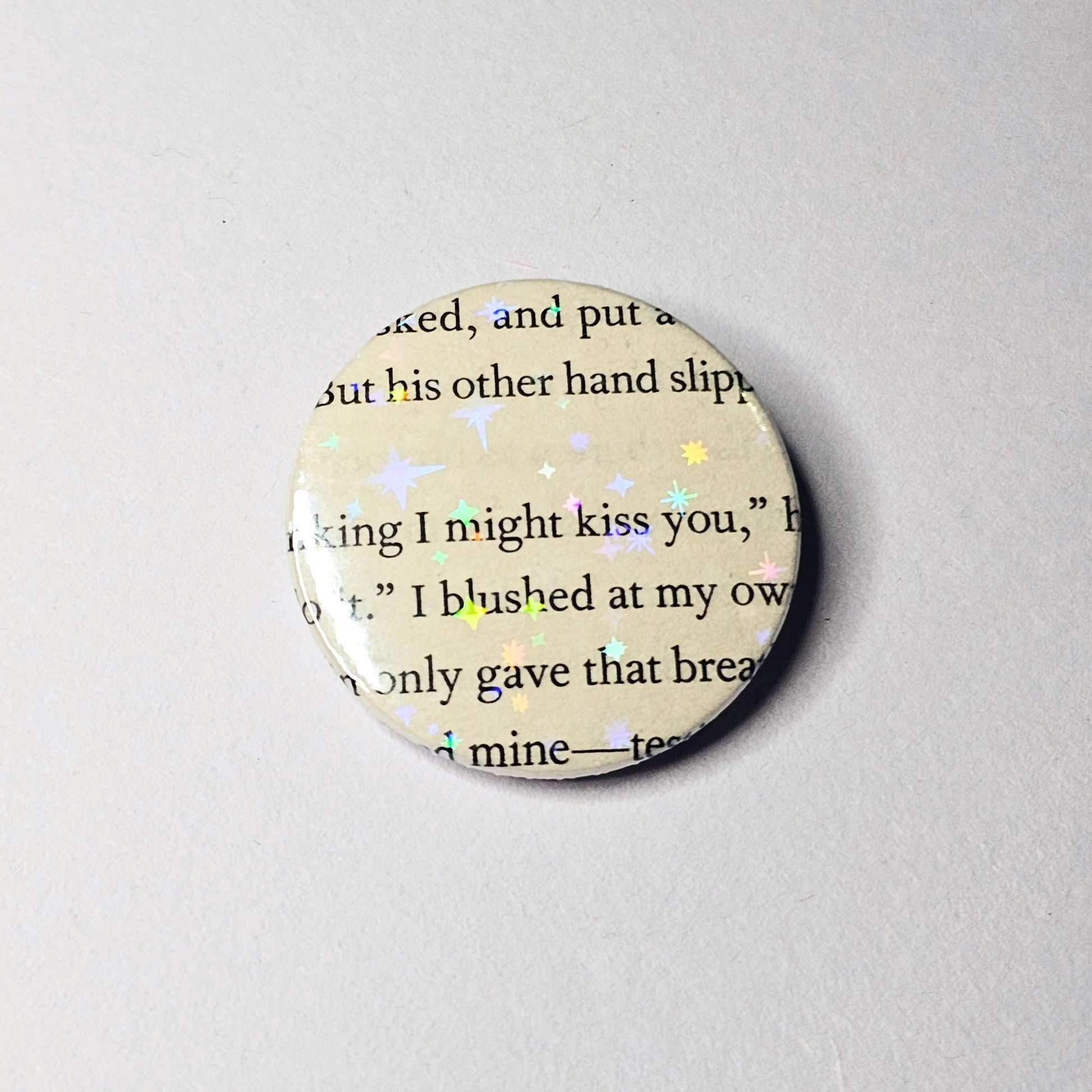 I Might Kiss You - Upcycled ACOTAR Book Page Pin | 38mm Holographic Button Badge | Unique Book-Lover Gift